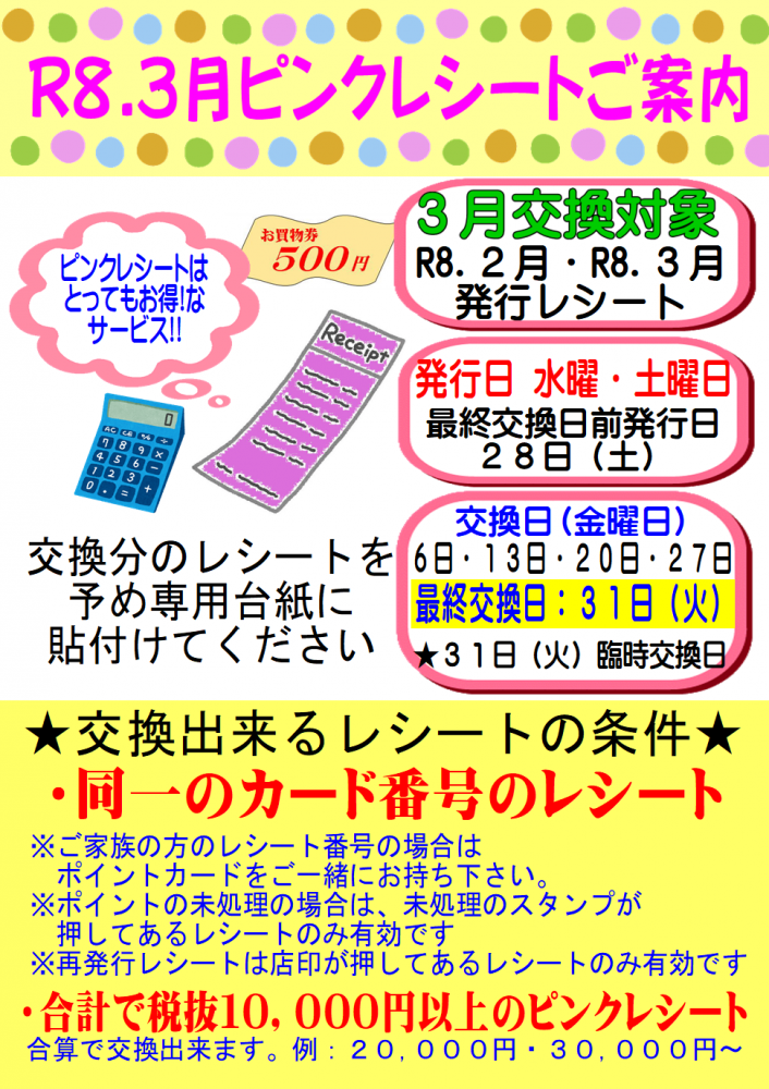 毎週日曜日はお支払金額に合わせて ポイントを増量いたします ※現金・コジカ支払い…